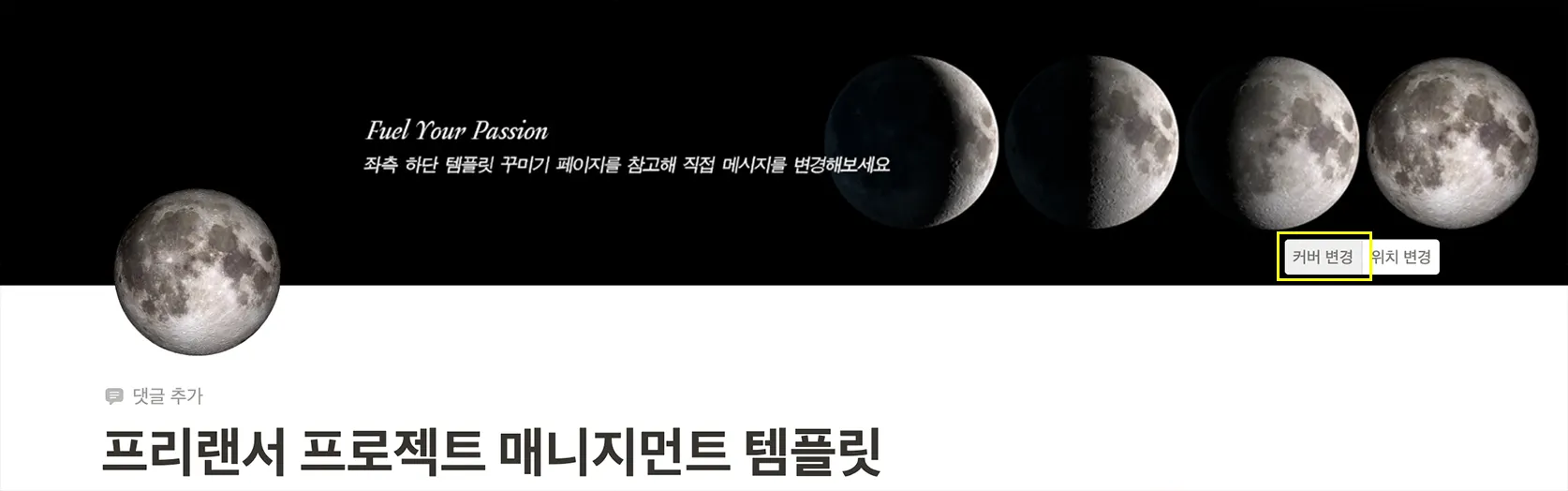 노션에서 ‘커버 변경’ 클릭하고, 새로운 배경 적용하기