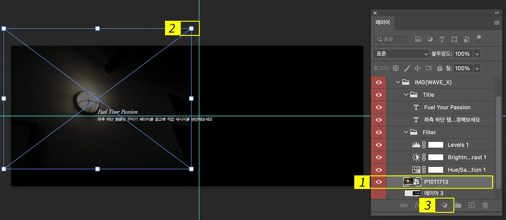 레이어 창 하단 ‘조정 레이어’ 추가해 이미지 보정하기