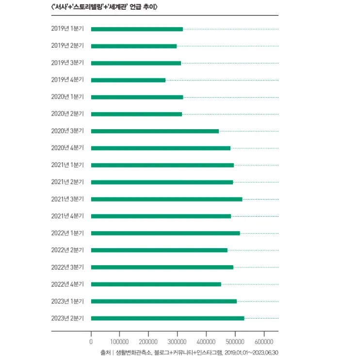 실제로 서사(스토리텔링) 혹은 세계관에 대한 사람들의 관심은 2020년 7월부터 급증하기 시작해 지금도 꾸준하게 유지되고 있다.