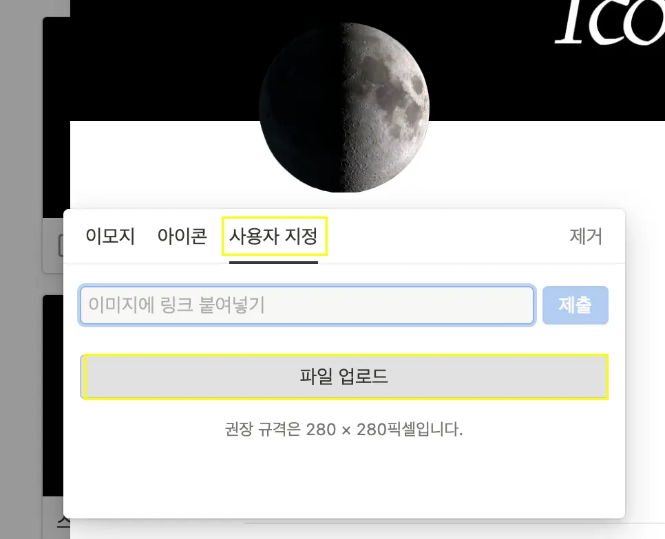 ‘파일 업로드’ 선택하고, 원하는 이미지 업로드하기
