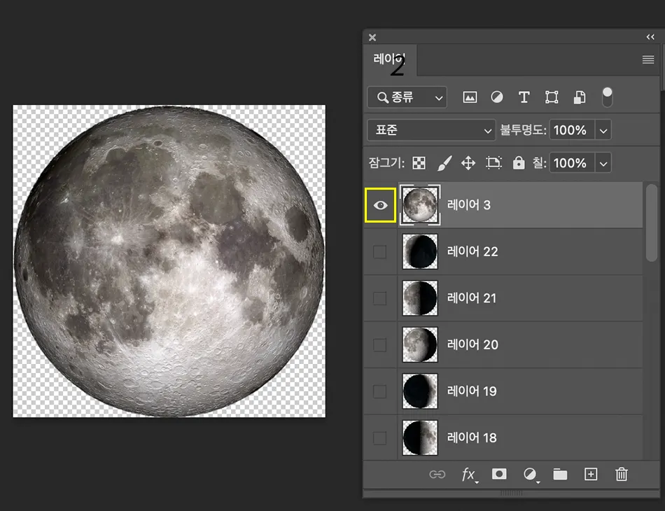 템플릿 열고, 레이어 창에서 아이콘 확인하기