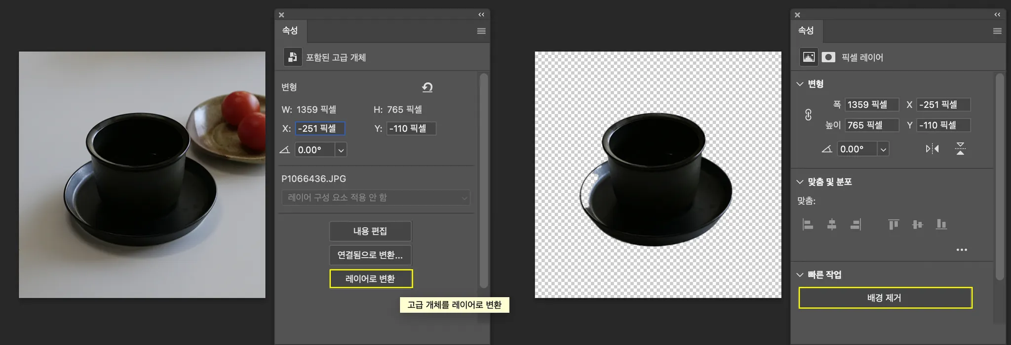 속성 창에서 ‘레이어로 변환’ 선택하기