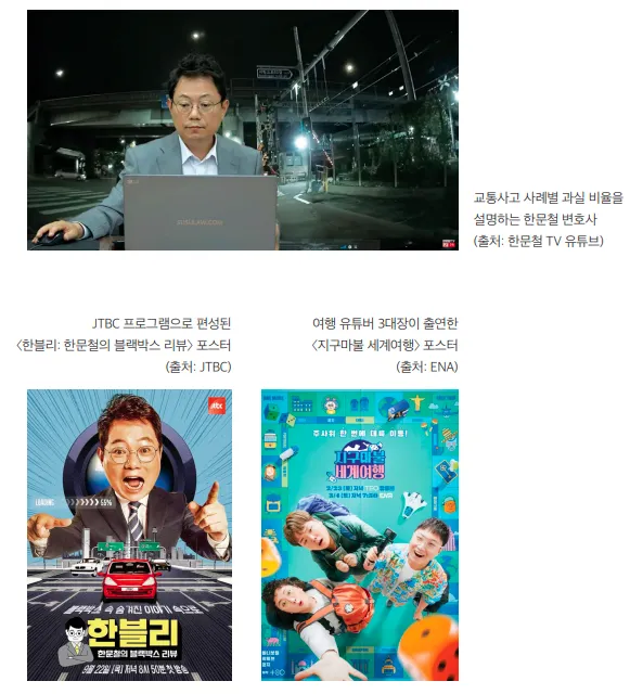 JTBC는 2022년 9월부터 〈한블리: 한문철의 블랙박스 리뷰〉를 정규 프로그램으로 편성했다. 한문철 교통사고 전문 변호사의 유튜브 채널 한문철 TV에서 아이디어를 얻은 이 프로그램은 기상천외한 도로 위 사건 사고를 담은 블랙박스 영상을 소개하는 방송이다. 한문철 변호사가 운영하는 유튜브 한문철 TV는 블랙박스 사고 영상을 토대로 교통사고 사례별로 과실 비율을 판단해주는 방송으로 유튜브 구독자가 177만 명에 달한다.