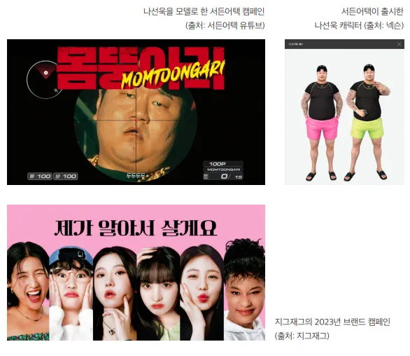 커머스 플랫폼 지그재그는 각 분야에서 독보적인 캐릭터를 뽐내며 자신만의 길을 가는 셀럽 6인을 캠페인 모델로 선정하여 2023년 브랜드 캠페인을 전개했다. 배우와 가수, 모델 들과 함께 앞서 언급한 78만 구독자를 보유한 여행 유튜버 원지와 74만 구독자를 보유한 일상 유튜버 해쭈가 출연해서 주목받았다. 다양한 여성의 삶의 모습과 다양한 체형, 스타일을 보여준 해당 캠페인은 공개 다음 날 지그재그 앱 사용자 수(DAU)가 전주 대비 30% 증가하며 좋은 반응을 얻었다.